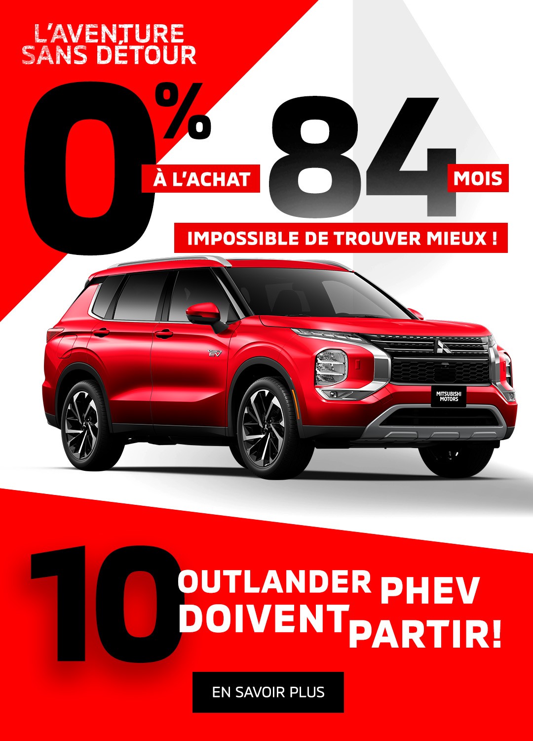 Si un manufacturier se démarque au niveau de la fiabilité, c’est bien Mitsubishi. Alors que la pluspart des manufacturier offrent des protections allant de 3 à 5 ans, nous nous démarquons avec la meilleure protection au monde. Puisque nous avons totalement confiance en nos véhicules, il est donc logique d'offrir à nos clients une garantie de 10 ans/160 000 km sur le groupe motopropulseur.